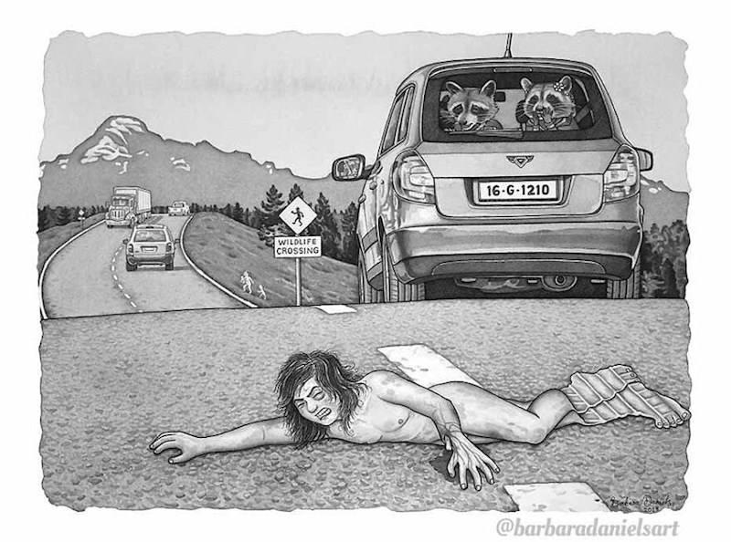 Ljudi svoje navike uzimaju zdravo za gotovo dok im ne promijeniš percepciju. Ova umjetnica svojim je ilustracijama željela otvoriti oči i prodrmati ljude da promisle koliko smo brutalni i neetični u svakodnevnom životu, a da o tome nismo nikad ni promislili. Naša vrsta voli sebi laskati kako smo napredniji od ostalih životinja, a zaboravljamo da smo dobar dio toga postigli nauštrb drugih vrsta. Ova galerija je, u najmanju ruku, uznemirujuća, ali će vas navesti na razmišljanje.