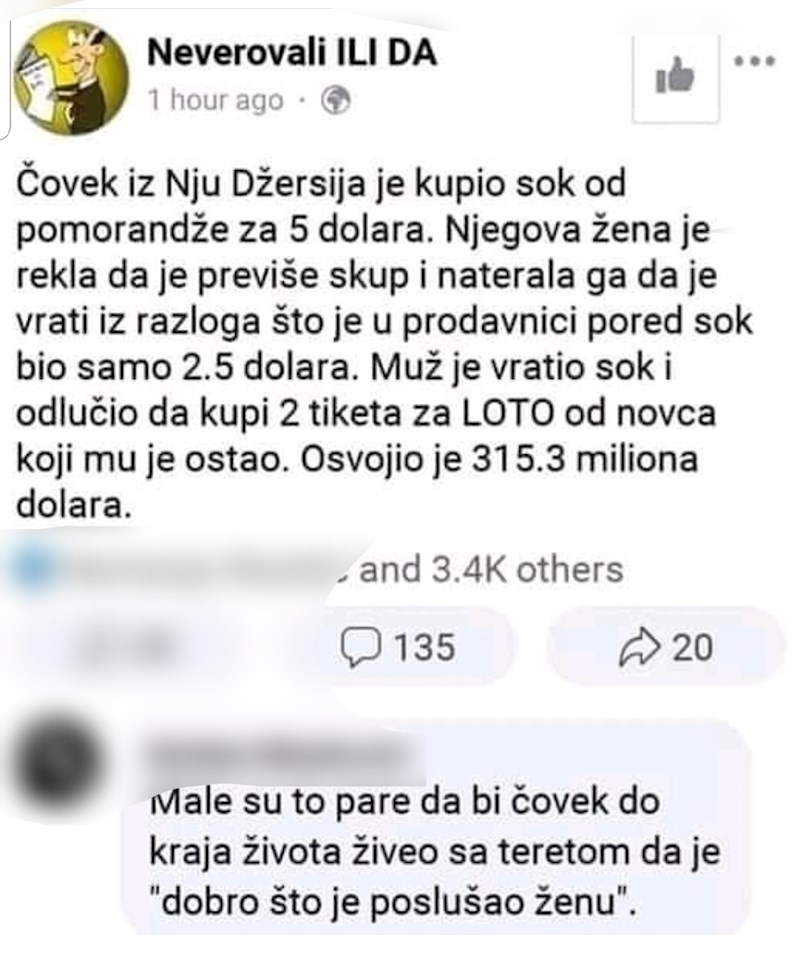 Muževi, slušajte svoje žene! Vidite kako se ovome tipu isplatilo!