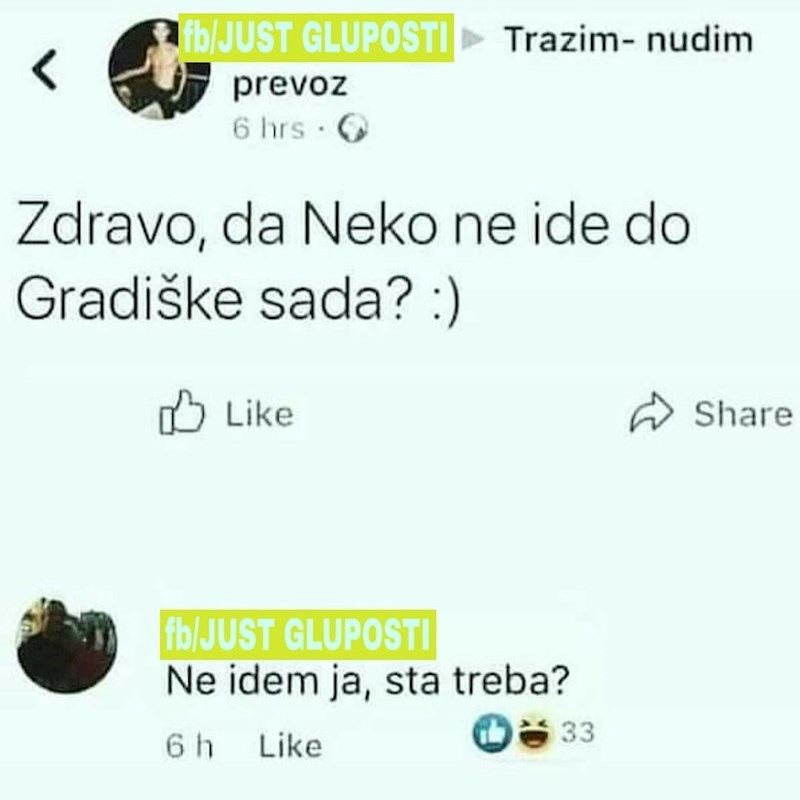 Postavio je jednostavno pitanje u grupi za traženje prijevoza, odgovor je nasmijao sve