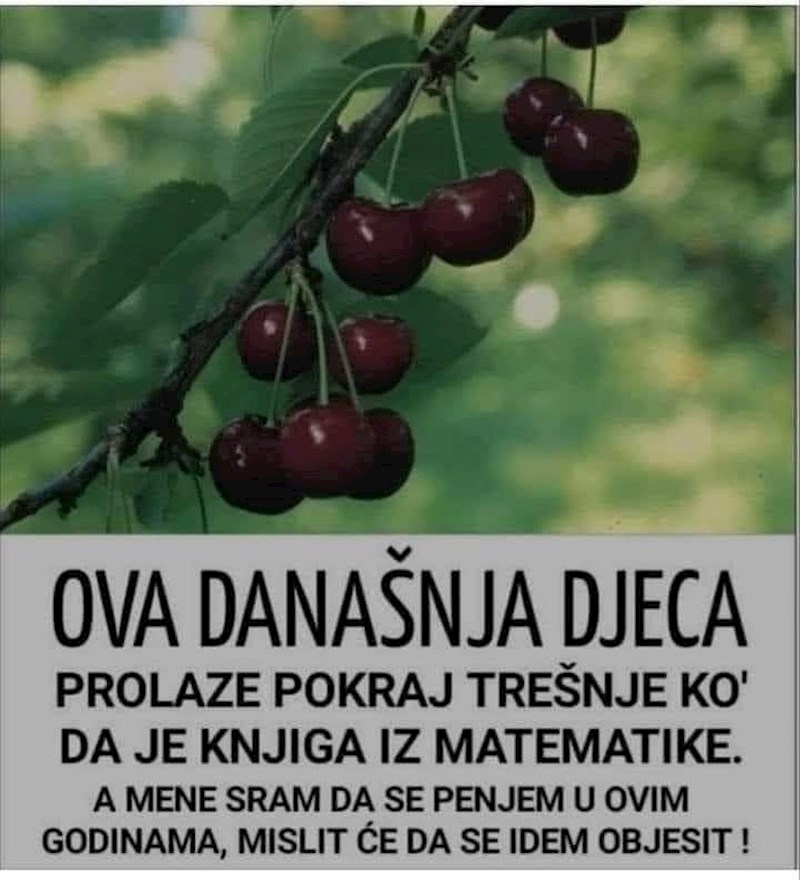 Fotka trešanja i opaska koju je netko napisao ispod ovih dana pravi je hit na društvenim mrežama. Morate vidjeti kakvi problemi muče autora ove smiješne fotke...😆