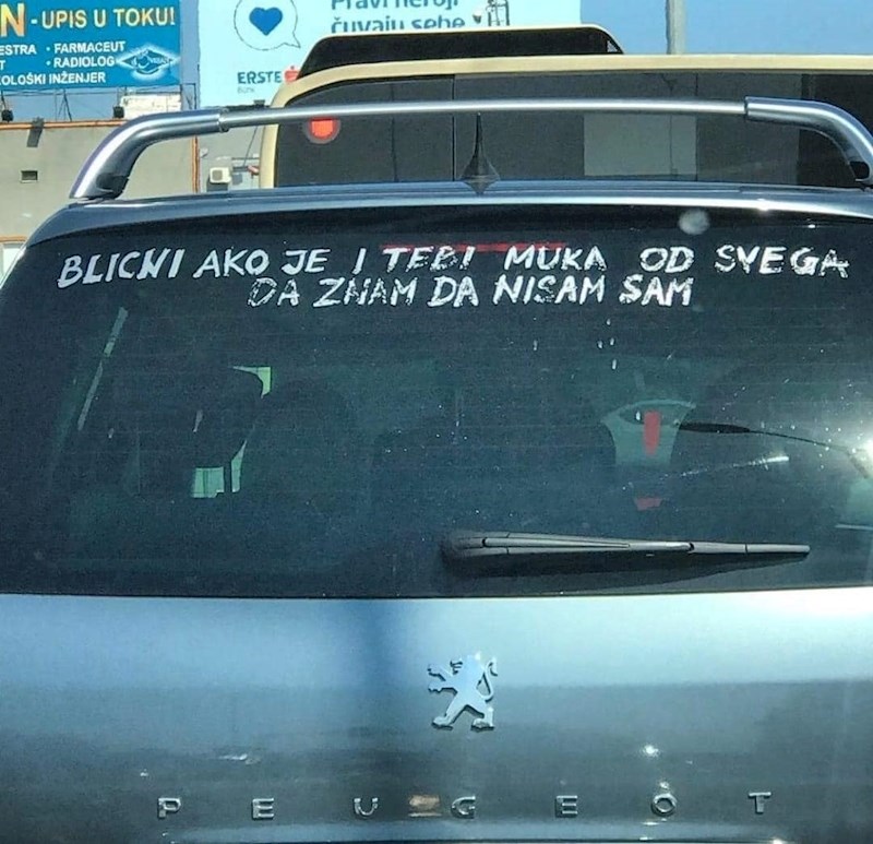 Netko kome je očito dosta loših vijesti i neizvjesnosti današnjice odlučio je na svojem autu napisati poruku svim poznatim i nepoznatim ljudima koji se osjećaju isto kao i on. Baš simpatična i u neku ruku čak i vedra gesta. 😊