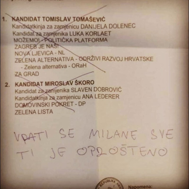 Netko je podijelio fotku svojeg glasačkog listića, morate vidjeti što je majstor dopisao