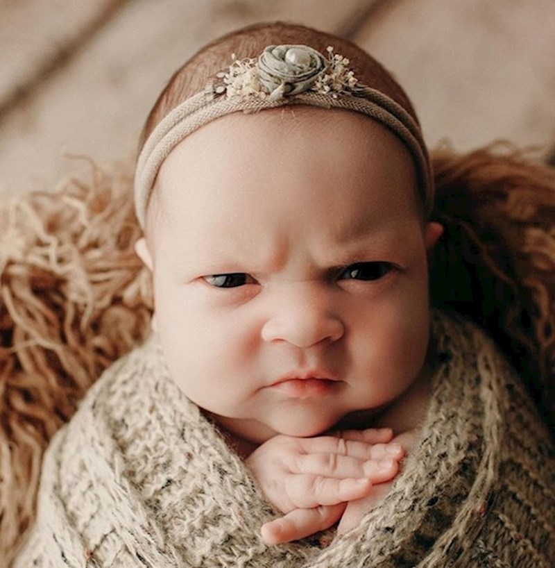 U posljednje vrijeme postaji trend fotogranja svojih beba. I dok svi očekuju da će bebe imati sretna i nasmiješena lica, jedna je beba odlučila učiniti upravo suprotno, i radila je samo ljuta i mrzovoljna lica tijekom cijelog fotografiranja.