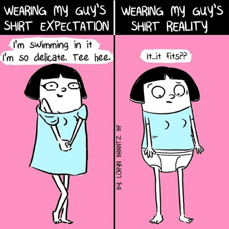 Svaka osoba na svijetu stvari i događaje doživljava na svoj način, često slična iskustva potpuno različito percipiramo. Ipak, postoje neke situacije, koje smo svi doživjeli barem jednom, na koje će isto reagirati netko tko živi u Australiji, Kini ili Hrvatskoj. Umjetnica Loryn Brantz u svojim je komičnim ilustracijama okupila 20ak takvih situacija i prikazala kako one izgledaju iz ženskog kuta gledanja! (Pronaći će se u njima i pokoji muškarac, priznali oni to ili ne.)