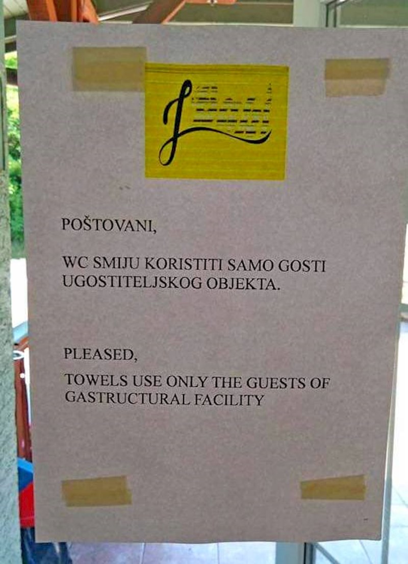 Netko je pronašao urnebesan engleski prijevod obavijesti na jednom lokalu i nasmijao društvene mreže