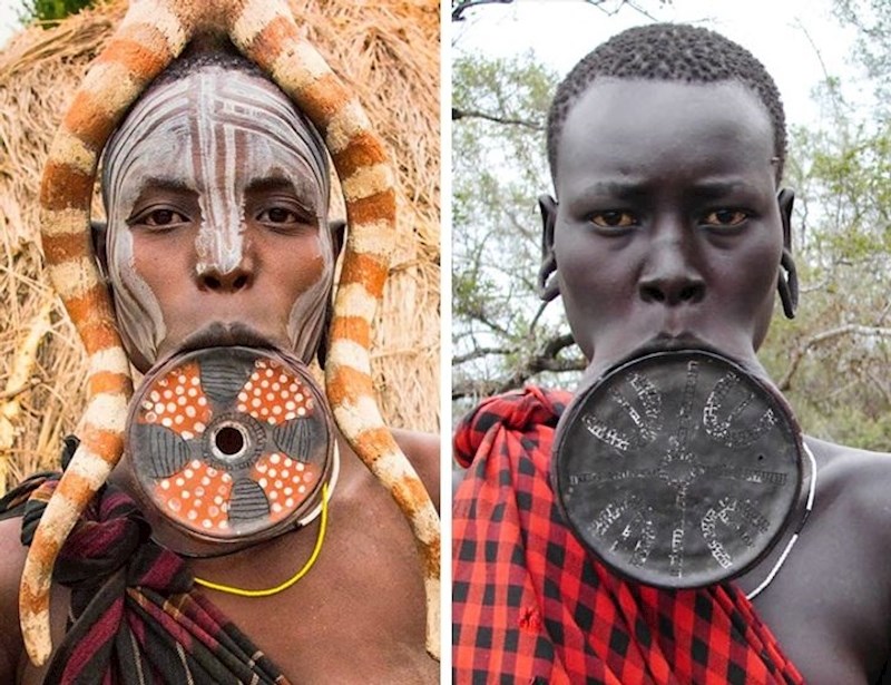 Mursi i Suri, plemena koja žive na području Etiopije, pripadnicama ženskog spola od rane dobi šire usta specijalnim diskovima. Što je žena višeg statusa u plemenu, to je disk veći.