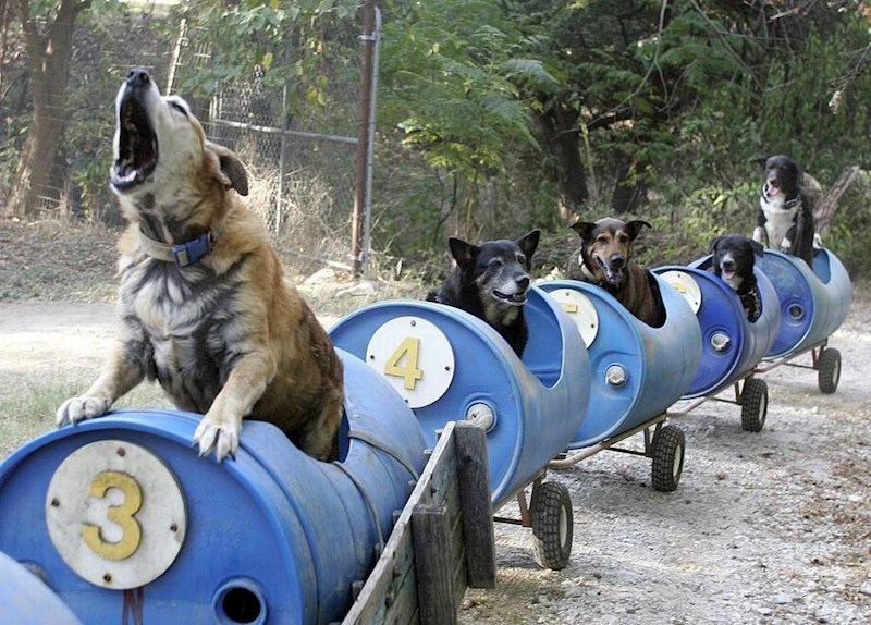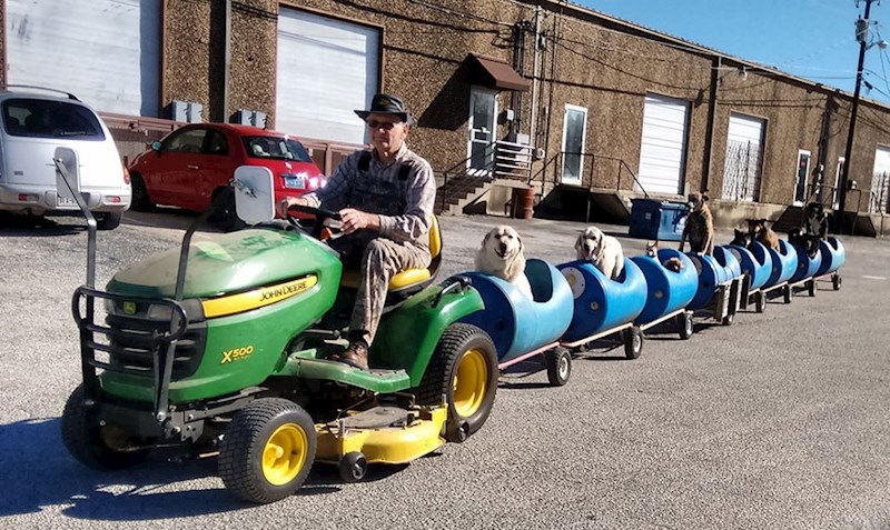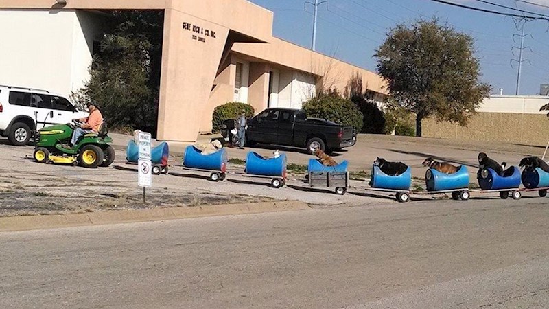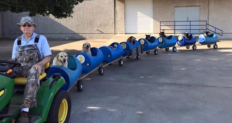 Ovaj dobri čovjek svoje je umirovljeničke dane posvetio spašavanju pasa lutalica. Na početku, dok ih je bilo svega nekoliko, šetnje nisu predstavljale problem. No, kada je brojka malenih štićenika postala dvoznamenkasta, Eugene Bostick počeo je razmišljati o jednostavnijem rješenju. Tako je nastao ovaj vlakić, koji je ubrzo postao atrakcija u Eugenovom gradiću u Teksasu i kojeg psi jednostavno obožavaju!