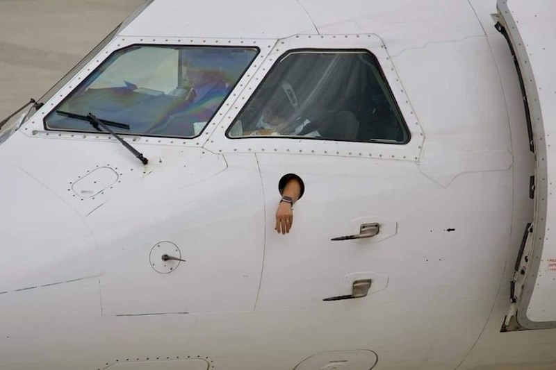 Nismo sigurni radi li se o fotomontaži, ali teško je ostati pribran kad vidite gdje se pilotu nalazi ruka.