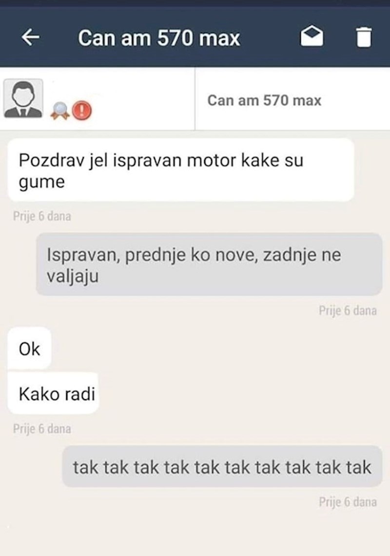 Ovaj prodavač opisao je zvukove koje njegov quad proizvodi dok radi i upravo to je nasmijalo zainteresiranu osobu koja se javila na oglas, a pogledajte i zašto.
