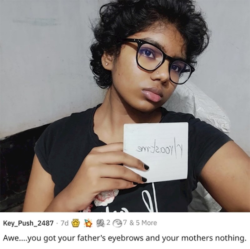 "Imaš očeve obrve i mamino ništa"