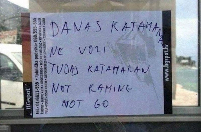 Obavijest o privremenom prekidu vozne linije katamarana u Splitu dijeli se na društvenim mrežama brzinom munje, a sve zbog urnebesnog prijevoda na engleski! Sva sreća da još nije sezona...