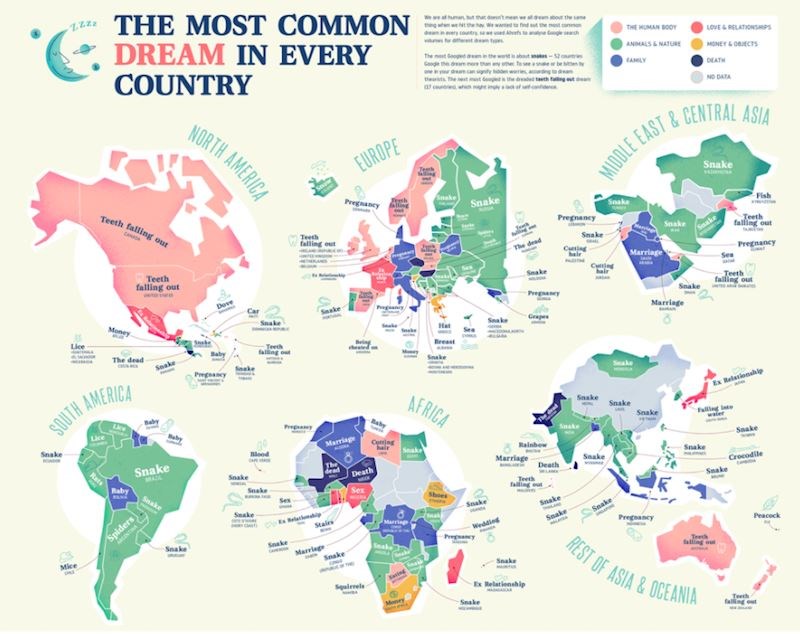 Ispadanje zubi, ženidba, zmije: netko je napravio kartu s najčešćim snovima u svijetu i hit je!