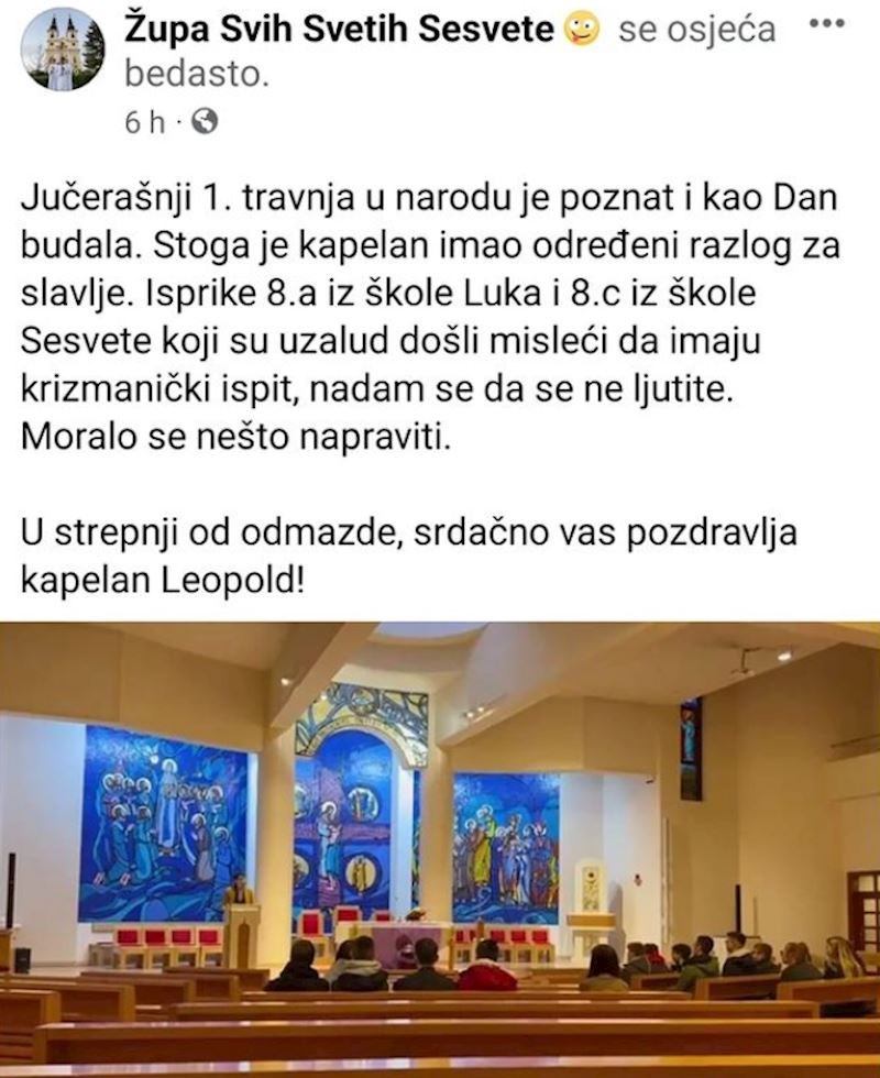 Širi se urnebesna isprika kapelana iz Sesveta, morate vidjeti koju foru je prodao za 1. travnja