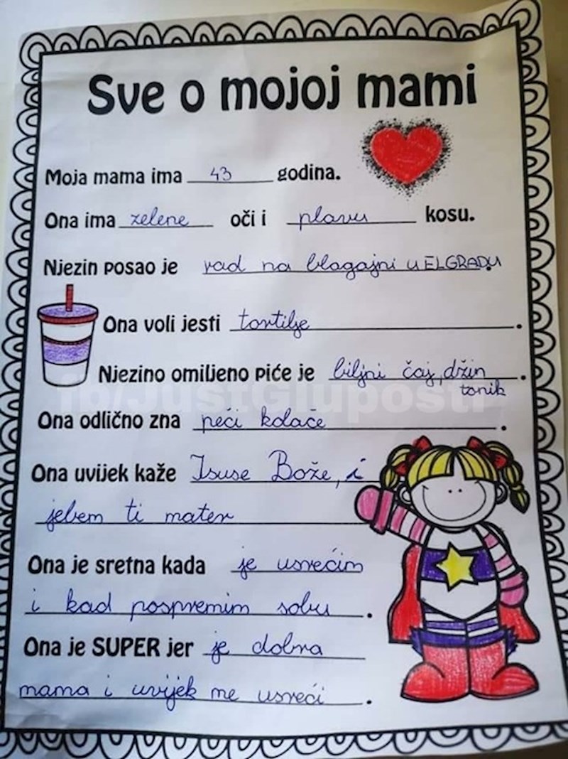 Djevojčica je trebala napisati omiljene riječi svoje mame, ovo definitivno nismo očekivali