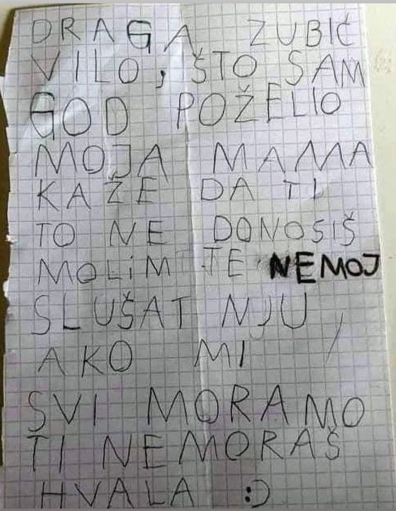 Pismo dječaka zubić vili postalo je hit zbog jednog detalja o mami, morate vidjeti