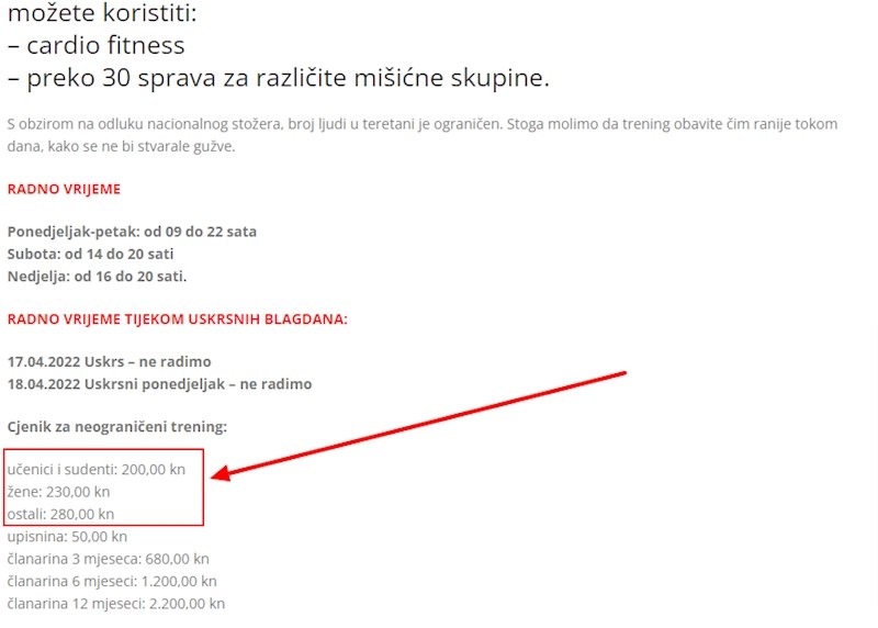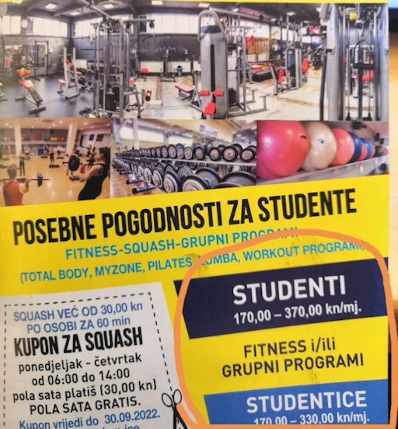 Priča ide ovako: jedan fitness centar u Zagrebu oglasio je svoje nove programe i posebne cijene za razne skupine korisnika. Studenti tako imaju jeftiniju članarinu od ostalih i to je očekivano i normalno, ali onda je ekipa primijetila još jednu stvar: cijena za studentice je manja od cijene za studente.