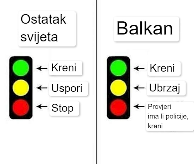 Fotka pokazuje kako se semafor tumači na Balkanu, a kako u ostatku svijeta