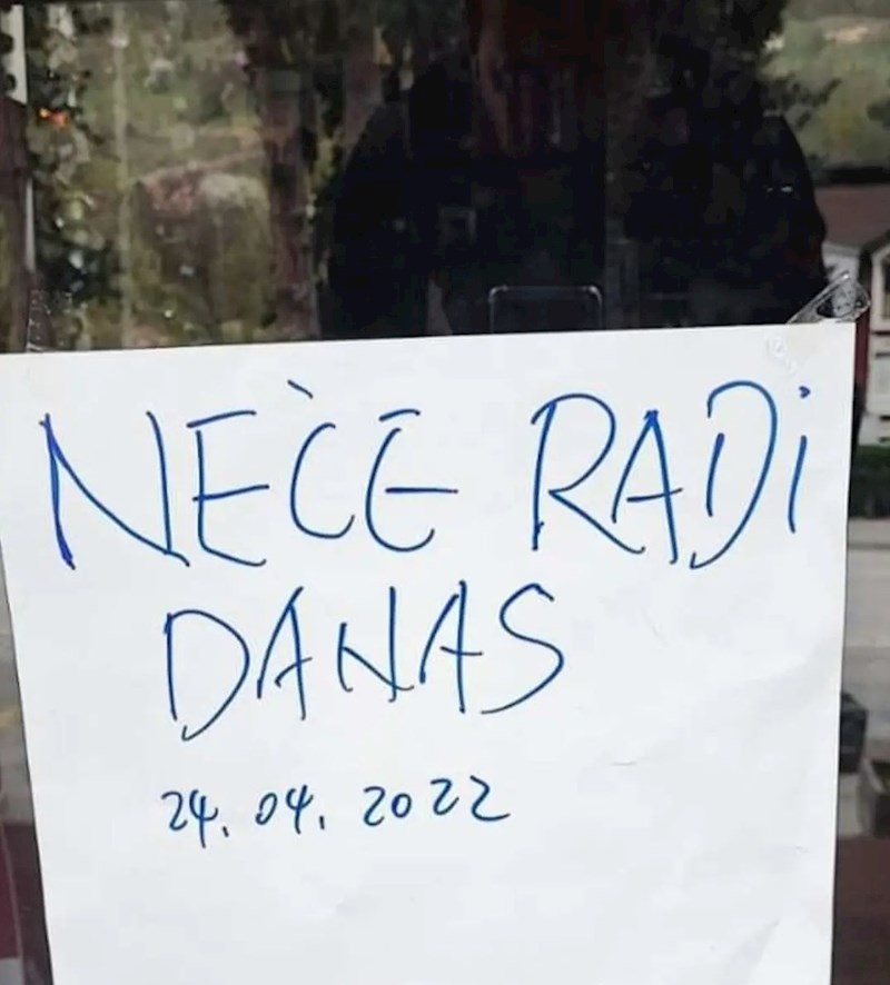 Regijom se širi obavijest postavljena na vrata jednog obrta negdje u Srbiji. Objašnjenje za iznenadni neradni dan kratko je i jasno- i urnebesno!