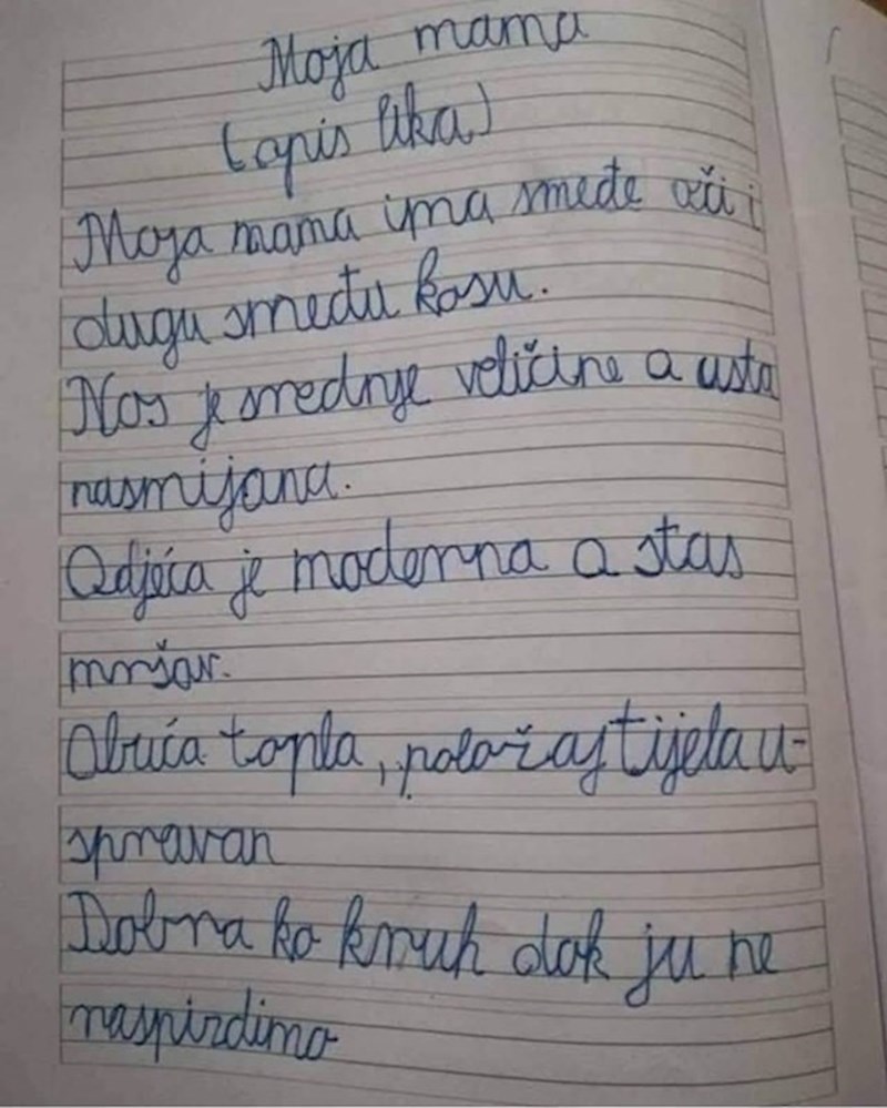 Klinac je u zadaćnici brutalno iskreno opisao majku i postao hit na društvenim mrežama