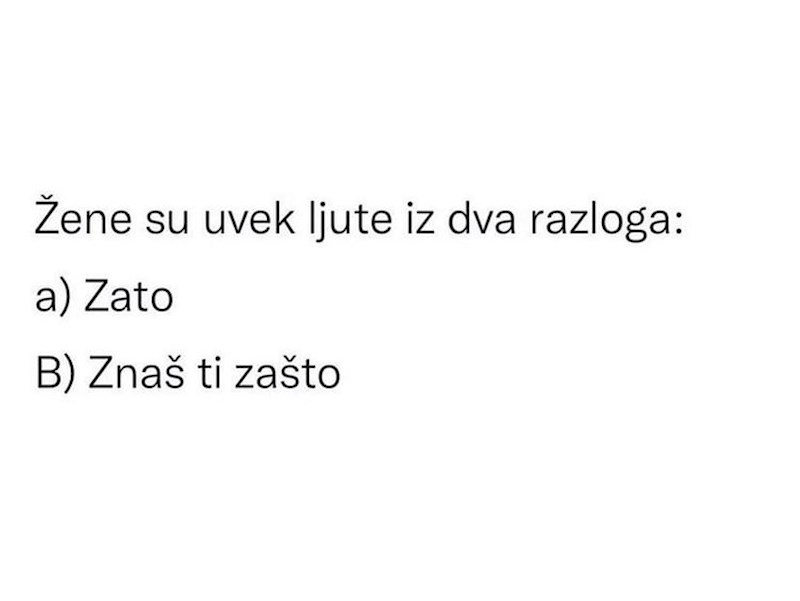Danas svi dijele ovaj meme o tome zbog čega se žene ljute, pogađate li drugi razlog