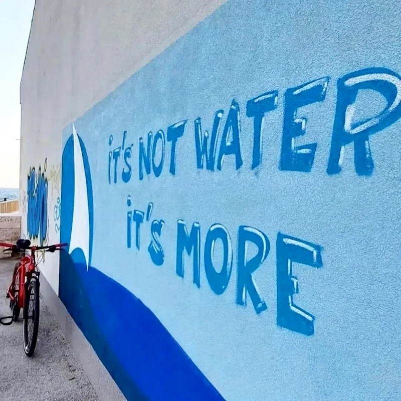 Da stvar bude još bolja, grafit je dvosmislen. Pa tako, osim što govori da voda nije isto što i more, doslovan prijevod bio bi "Nije voda, više je od toga". Cool!