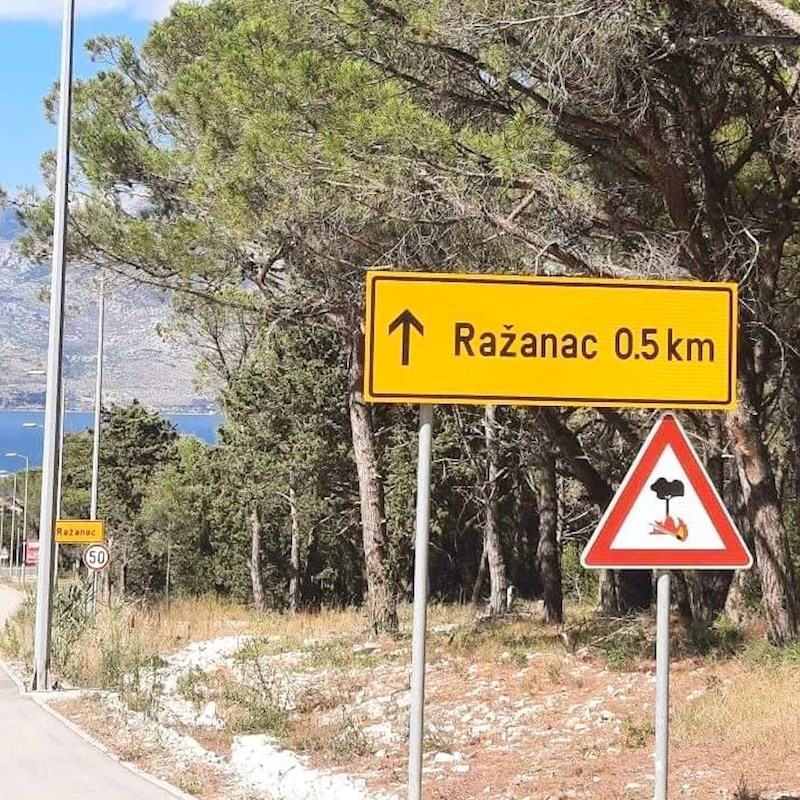 Radi se, naime, o tome da je netko pred samim mjestom postavio čak dva prometna znaka. Jedan koji označava da ćete ući u Ražanac za pola kilometra, i drugi, svega 10-ak metara udaljen, koji vas obavještava da ste sad u Ražancu. Eto, da se zna! 😁