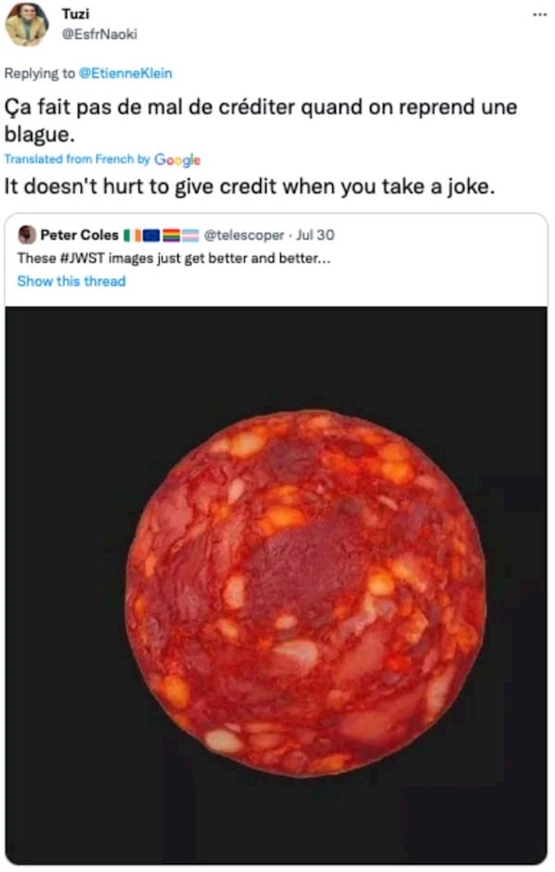 Poznati francuski fizičar i filozof Etienne Klein ukrcao se na vlak ekipe koja podiže sebi reach na društvenim mrežama fenomenalnim fotkama novog teleskopa James Webb.
