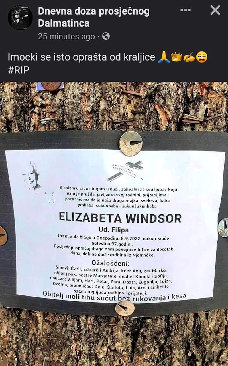Ovoga ima samo kod nas! Morate vidjeti osmrtnicu kojom se Imotski oprostio od Kraljice