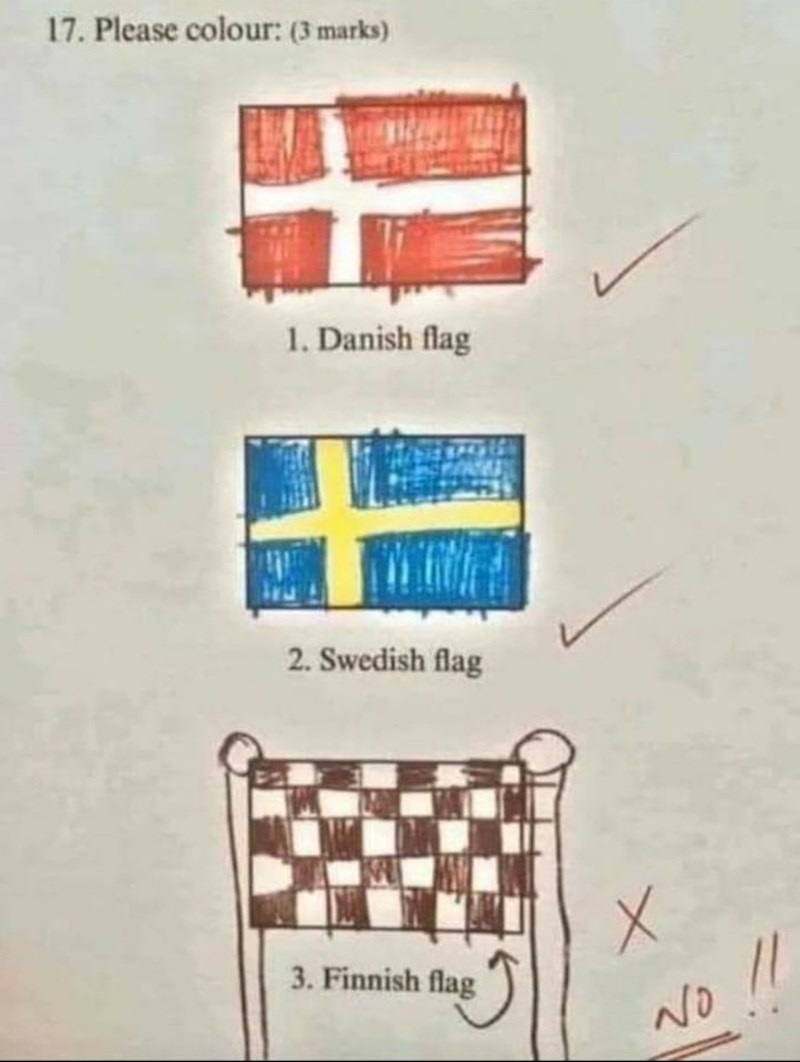 Fotka testa jednog osnovnoškolca postala je svjetski hit, a sve se zakuhalo oko finske zastave! Umrijet ćete od smijeha kada vidite što je dijete nacrtalo umjesto nje!