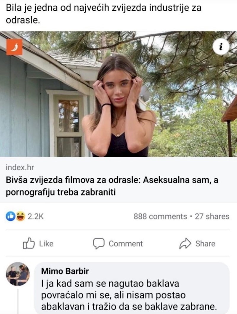 Komentar tipa na izjavu bivše zvijezde porno industrije obara rekorde na Fejsu, ovo morate vidjeti