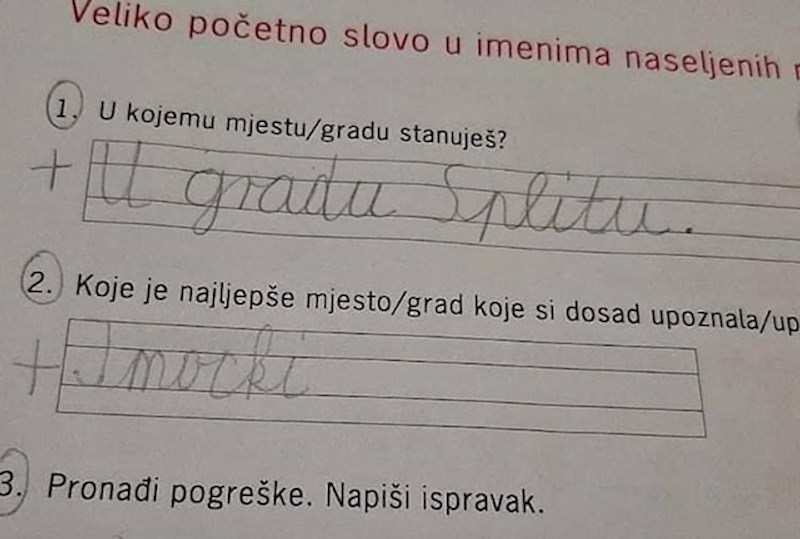Premda dijete nije baš ispravno napisalo ime grada kojeg smatra najljepšim na svijetu, roditelji itekako imaju zašto biti ponosni. Uspješno su prenijeli ljubav prema rodnom zavičaju na iduću generaciju. 😄