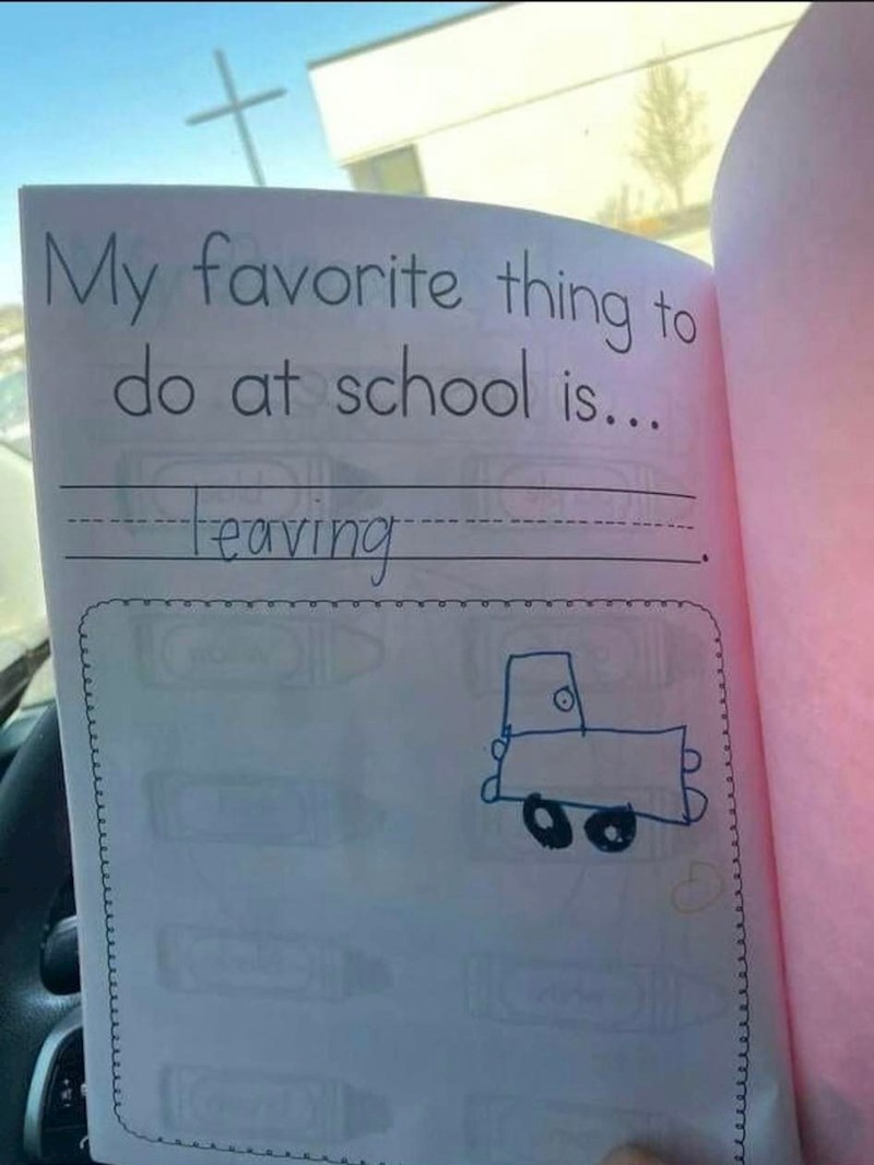 Pitanje je glasilo: "Što ti je najdraže raditi u školi?", a njegov brutalno iskren odgovor koji je ukrasio pripadajućim crtežem nasmijao je milijune ljudi diljem svijeta. Ne sumnjamo da će i vas. 😂