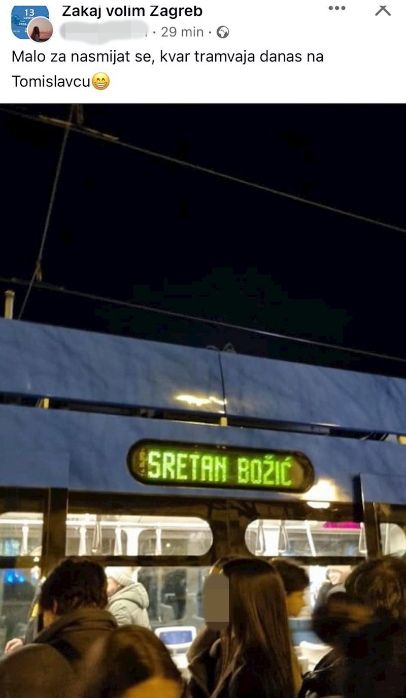 U popularnoj grupi za ljubitelje našeg glavnog grada osvanula je fotka urnebesne pogreške na ekranu jednog ZET-ovog tramvaja. Ako zamislimo da je fotka snimljena uoči Božića, a ne pred samo proljeće, onda je sve u redu. 😅