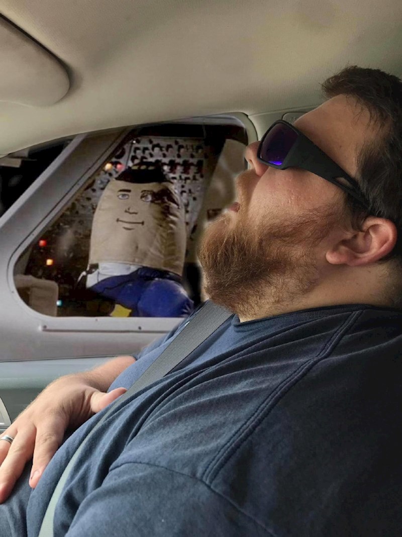 Naime, jedan je čovjek zaspao na suvozačkom mjestu automobila, a njegova žena to je iskoristila za presmiješnu spačku. Zamolila je nepoznate ljude na društvenim mrežama da fotošopiraju što je sve njezin muž propustio tijekom vožnje, a rezultati su - urnebesni! 😂