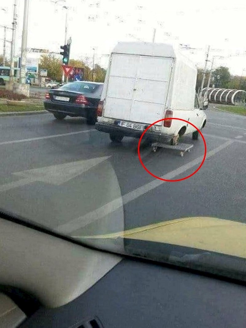 Ljude na društvenim mrežama šokirala je fotografija koju je netko snimio na jednom raskrižju. Dobro pogledajte fotografije kako biste uočili što je vozač bijelog vozila iskoristio umjesto kotača...