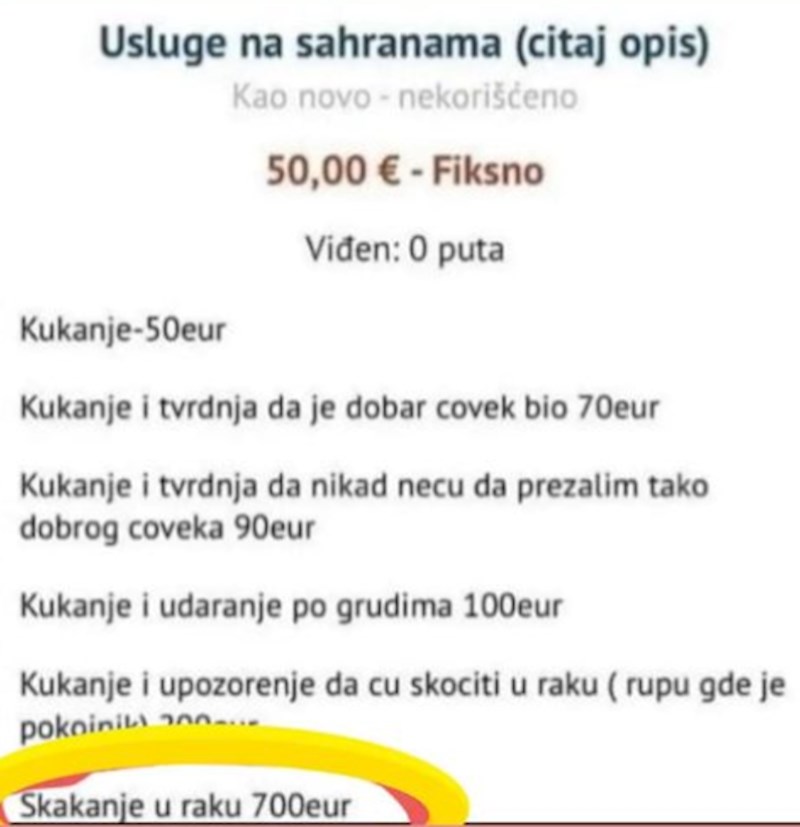 Fejsom se brzinom munje širi fotka cjenika usluga na sahranama, morate vidjeti ovaj dragulj