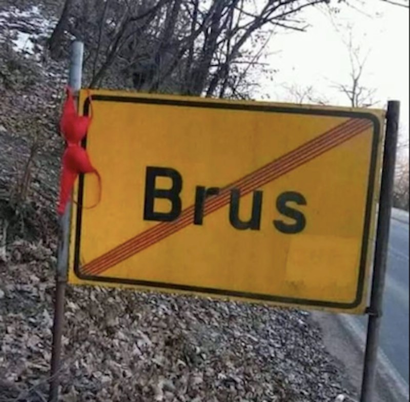 Na prometnom znaku koji označava kraj grada Brusa u Srbiji osvanuo je zanimljiv predmet. Fotka je, naravno, rasplamsala maštu mnogih i odmah postala hit na društvenim mrežama.