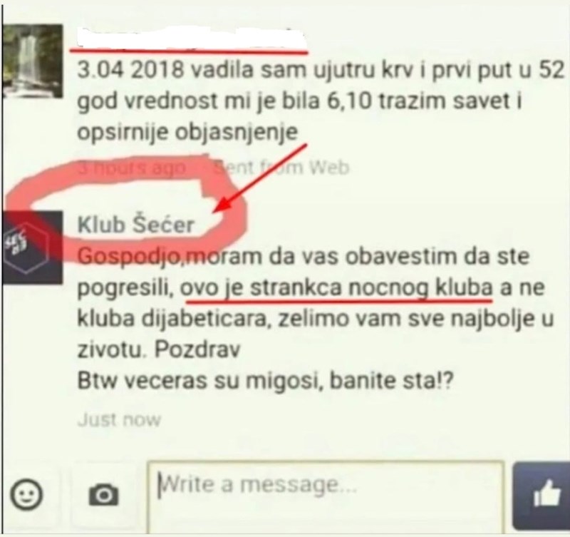 Žena se zabrinula zbog vrijednosti šećera u krvi, te je potražila pomoć na Facebook profilu naziva "Klub Šećer". Urnebesan nesporazum nasmijao je tisuće!