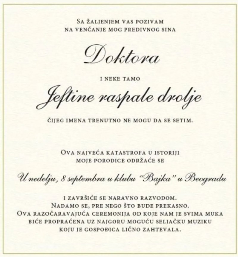 Mama mladoženje svojoj strani svatova sastavila je posebnu pozivnicu za svadbu, morate vidjeti