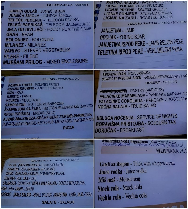 Ususret sezoni, prijevodi jelovnika i ove godine izazivaju salve smijeha. Donosimo najurnebesnije!