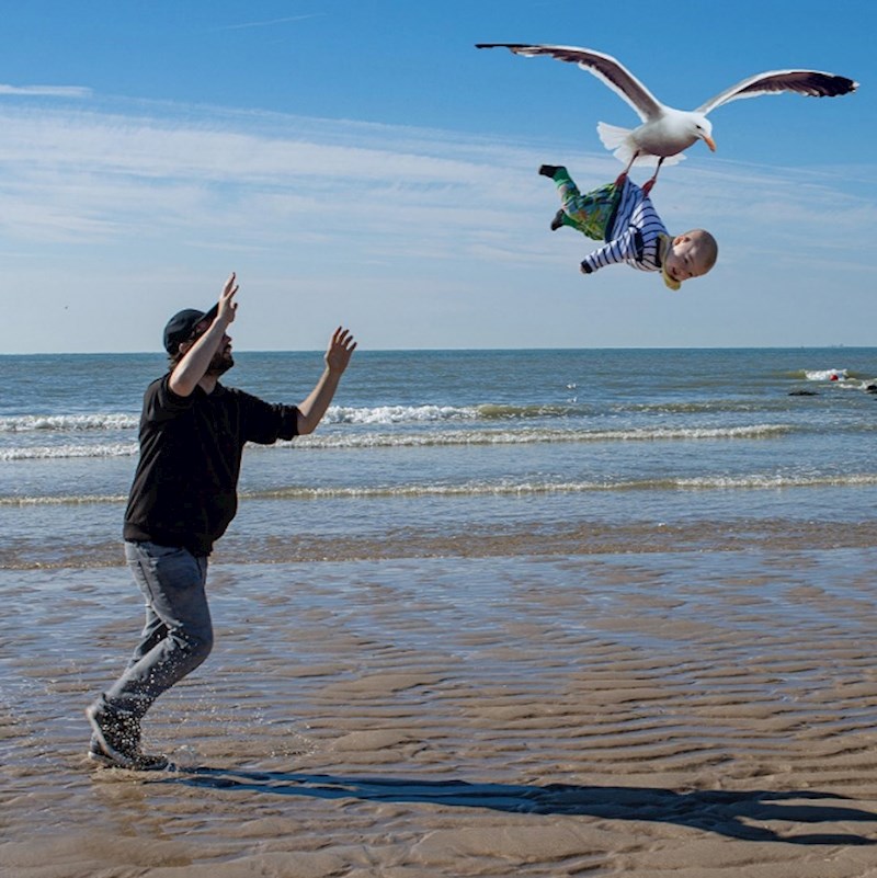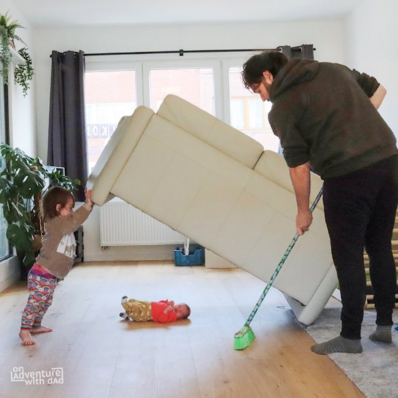 Naime, uz pomoć kamere i Photoshopa počeo je prikazivati "opasne" situacije u koje je doveo svoju kći. Nedavno je par dobio još jednu prinovu pa su i fotke sada duplo smješnije! 🤣