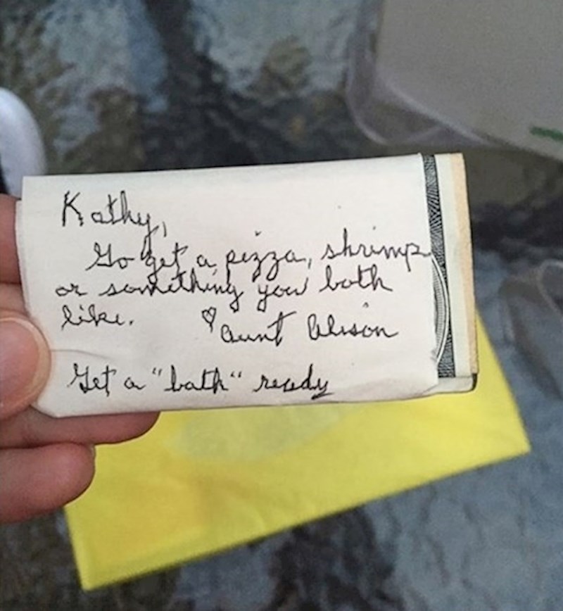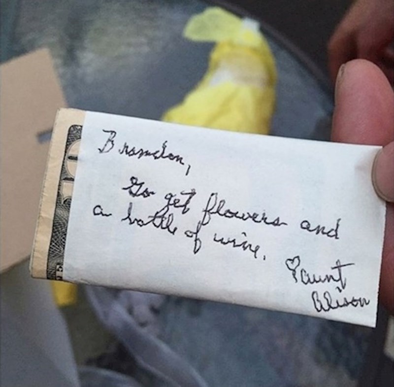 Otvorili su poklon i pronašli dvije poruke - jednu za Kathy, drugu za Brandona. Na njenoj poruci pisalo je "Idi kupi pizzu, škampe ili nešto što oboje volite.", a na Brandonovoj "Idi kupi cvijeće i bocu vina.". Osim poruka, u kutiji je bila i kristalna vaza za cvijeće, dvije čaše za vino te kupka za opuštanje u kadi.