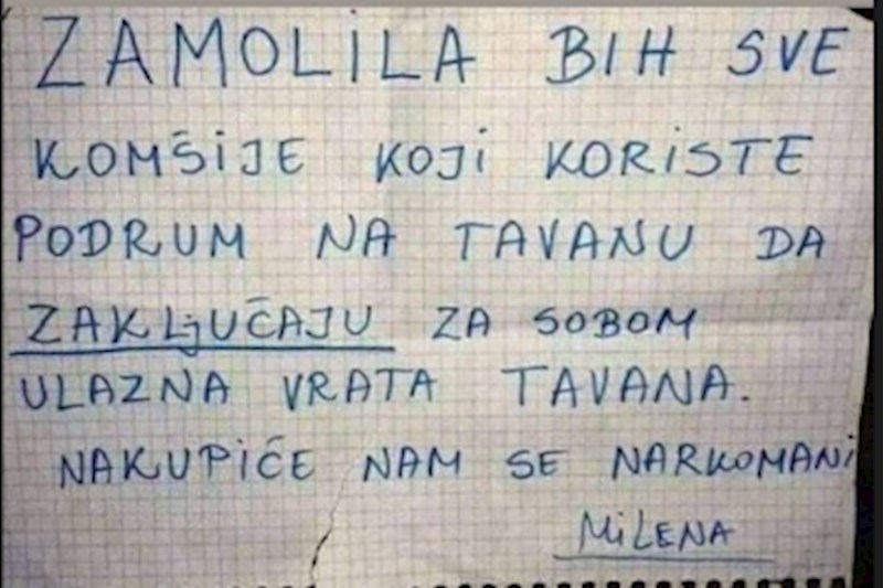 Žena je ostavila obavijest u kojoj moli susjede da zaključavaju tavan, razlog je urnebesan