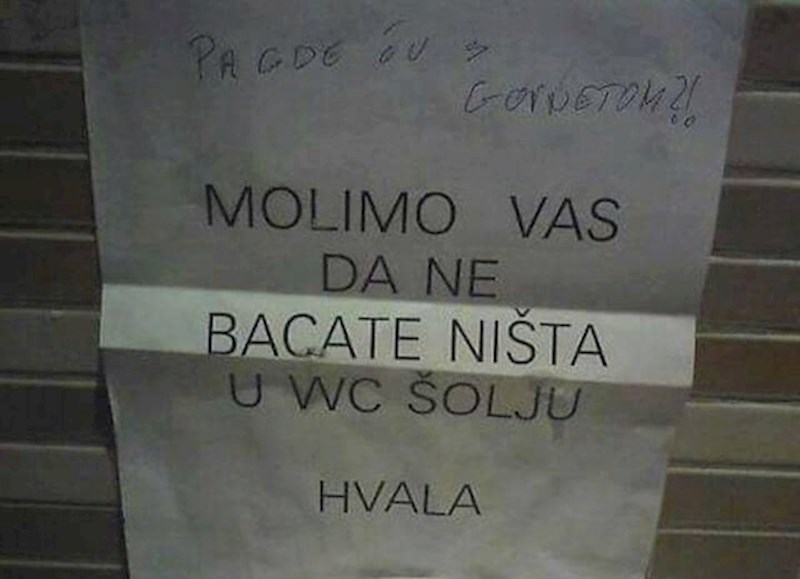 Osoblje lokala objesilo je pristojnu zamolbu u wc, jedan gost se zabrinuo i dopisao nešto urnebesno