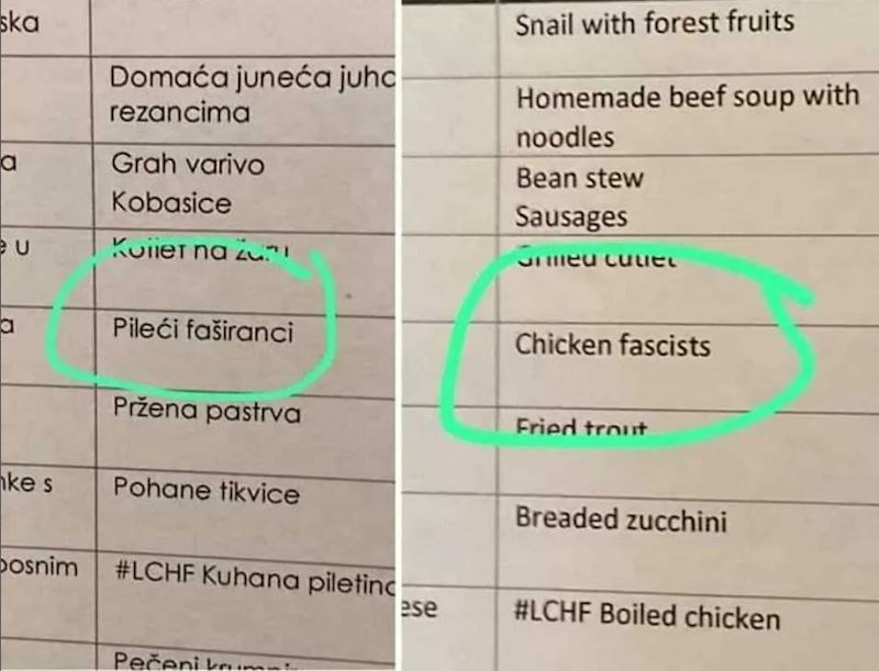 Počela je sezona, a s njom su došli i nezaobilazni biseri u jelovnicima. Ovaj pokušaj prijevoda možda je najluđi od svih dosad viđenih... 😅