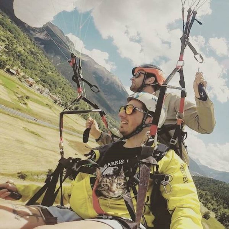 Rémy Vicarini udomio je svoju mačku Cathode prije sedam godina i od tada su doslovno nerazdvojni. Maca je, naime, toliko privržena svojem vlasniku da s njim rado ide u razno razne adrenalinske pustolovine.
