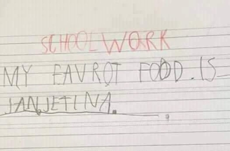 Učenik je trebao na engleskom napisati koje mu je omiljeno jelo, morate vidjeti ovaj hit