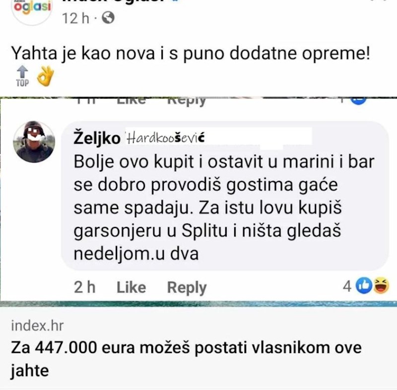 Netko je na Index oglasima stavio jahtu na prodaju, a jedan komentar učinio je oglas apsolutnim hitom u regiji.