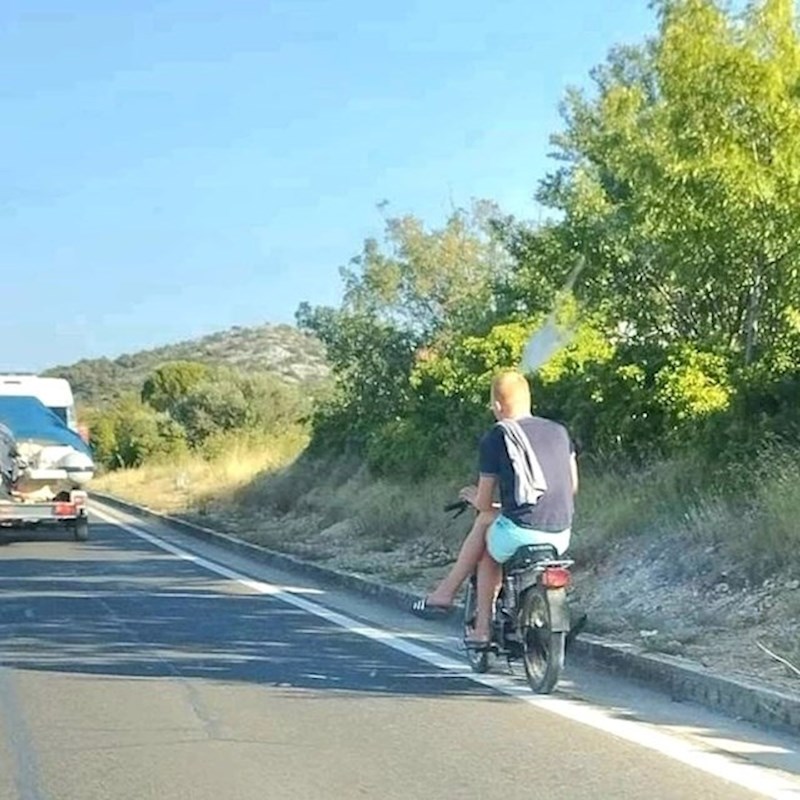 Posljednji hit je ovaj tip i njegov bizaran način vožnje motora. 😬