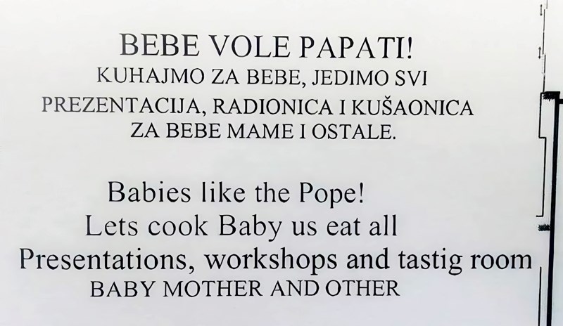 Obavijest o radionici za pripremu hrane za bebe pošla je po zlu od samog početka. Već nespretno napisana na hrvatskom jeziku, još je dobila i urnebesan prijevod koji će vas istovremeno nasmijati, šokirati, a lako moguće i rastužiti. Jer ovo bi zaista bilo tragično, da nije ovoliko smiješno...
